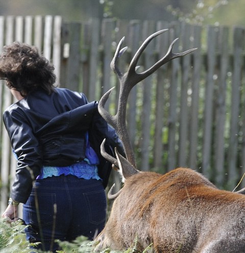 Προηγούμενο «θύμα» του οξύθυμου ελαφιού ήταν μια γυναίκα, την οποία το ελάφι κυνήγησε και φυσικά… κατατρομοκράτησε!
