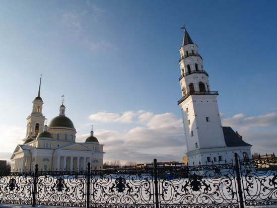 Ο πύργος του Nevyansk βρίσκεται στο κέντρο του Nevyansk και είναι το πιο γνωστό κτίριο της περιοχής. Χρηματοδοτήθηκε από τον Μέγα Πέτρο και χτίστηκε στο πρώτο μισό του 18ου αιώνα από έναν διάσημο Ρώσο κατασκευαστή, τον Akinfiy Demidov. Το ύψος του πύργου είναι 57,5 μέτρα. Σύμφωνα με πρόσφατες μετρήσεις, η κλίση της κορυφής από τη βάση του είναι 2,20 μέτρα. Η ακριβής ημερομηνία της κατασκευής του πύργου είναι άγνωστη. Αναφέρεται πως χρονολογείται μεταξύ του 1721 και του 1745.